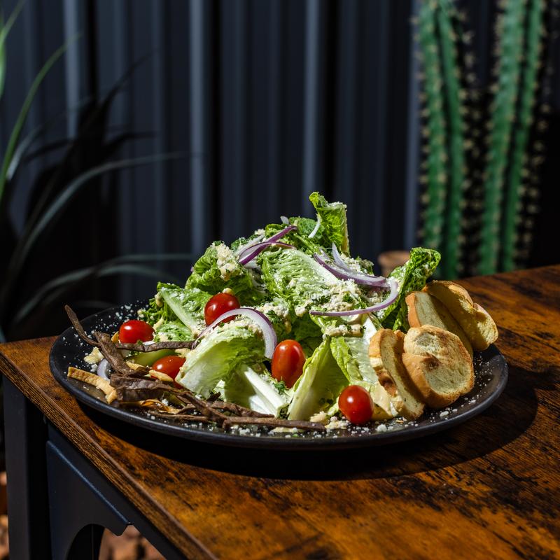 Crispy romaine lettuce, cherry tomatoes, red onions, coriander, cotija cheese, and crushed crunchy tortilla. Served with our in-house creamy dressing.