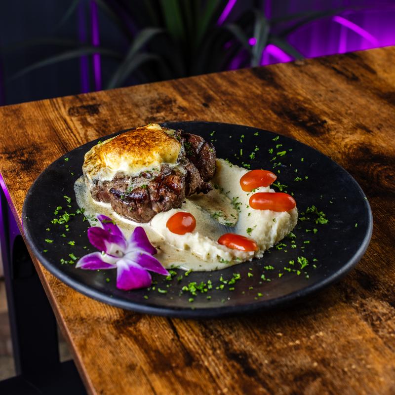 Signature Vue Prime Tenderloin – A perfectly grilled beef tenderloin, cooked medium rare, topped with a smooth, golden butter sauce. Served alongside a smooth, buttery potato purée.